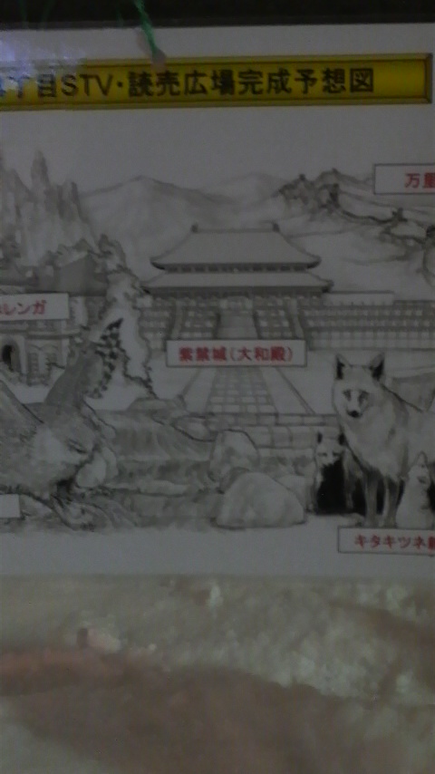でも、久し振りに雪像製作しているのを見たけど、何年か前は厳戒体制がひかれているかのような、何も見えない状態だったのが、今じゃ撮影ポイントの案内と、完成予定図まで提示していたのにはびっくり!