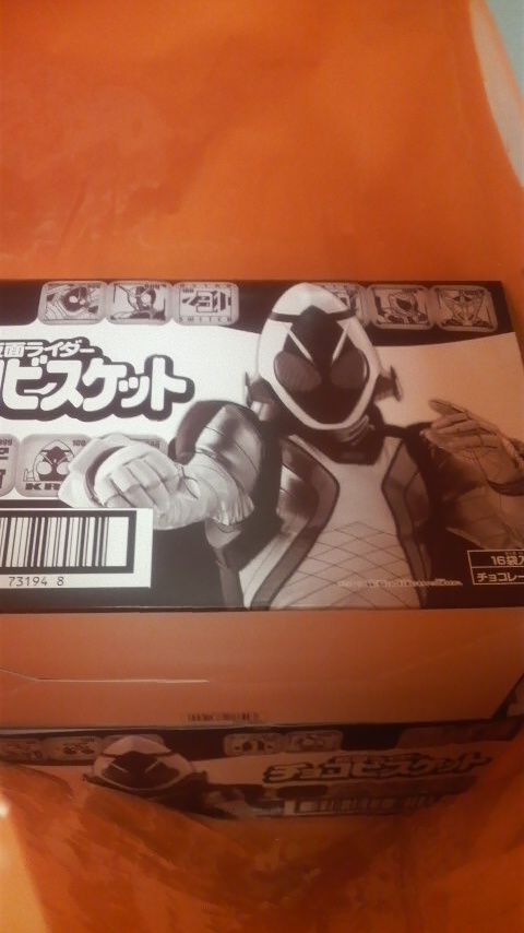 アストロロケット色(鮮やかなオレンジ)のビニール袋に入れてくれたんだけど、実は中身がスケスケで仕事場に戻る道中、フォーゼのチョコビスケット二箱を晒しながら歩いていたという軽い自己羞恥プレイ。(爆)