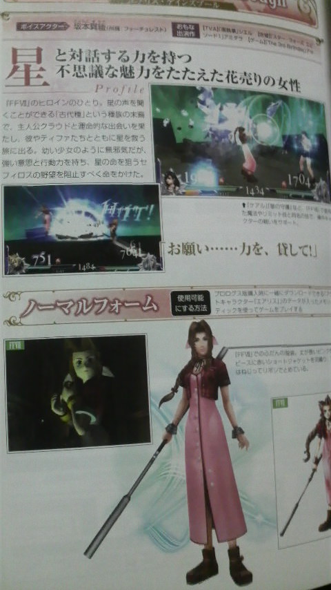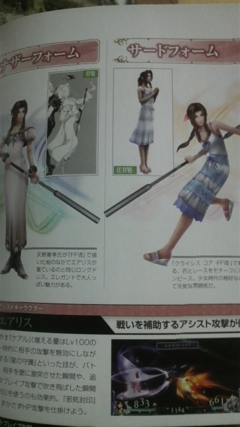 隠しキャラクター(エアリス目当て)も載っているという理由だけで、バトルサイドしかチラッと読んだだけですが、お目当てのエアリスは、公式サイトで見たゲーム仕様だけなのねん…。