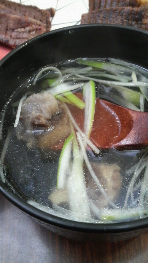 移植手術前の歯が圧に弱い(痛くなる)ので、小さく切って粗びき胡椒をたっぷり降って、酒の肴にさせて頂きました。