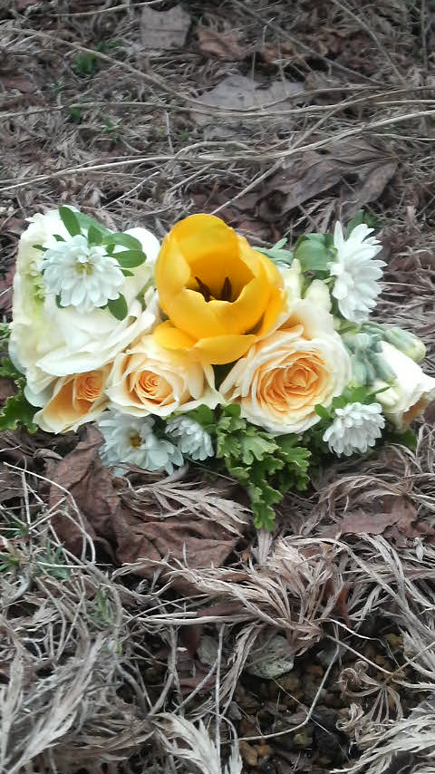 愛猫の命日に仕事が終わった後、花を手向けに行ったた時はもう日が暮れて、暗い中で目見当で花束を供えました。