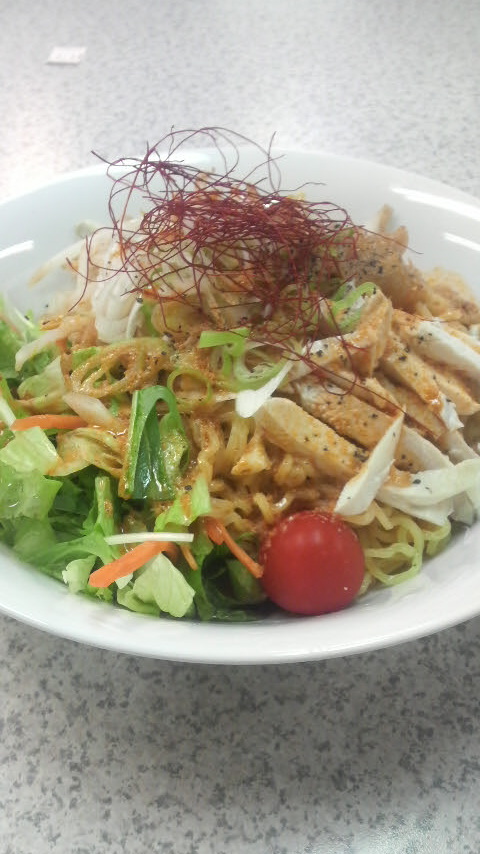 ずっとそれが食べたくて、冷やしラーメンの季節を待っていたのにぃ~!(>_<)レタスやもやしなどの野菜や鶏肉などの具材がたっぷりで、それに辛めのタレが合って本当に美味しかったんです。