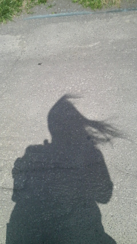そして私は今日もまた、強い逆風の中で自分の髪の毛に視界を邪魔されながら仕事に向かうのですが、自分の影を見てふと…。