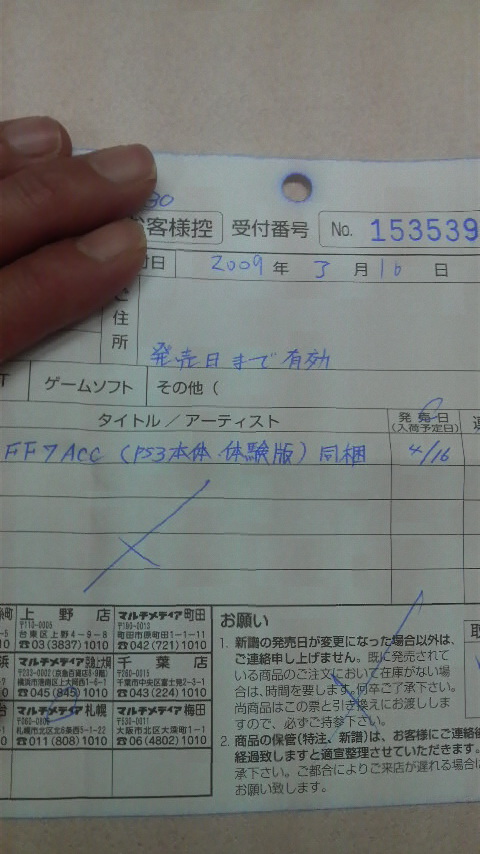 だって、“ディシディア・ファイナルファンタジー”の発売日がぁ~~~!!!!!・゜゜(>_<)゜゜・。