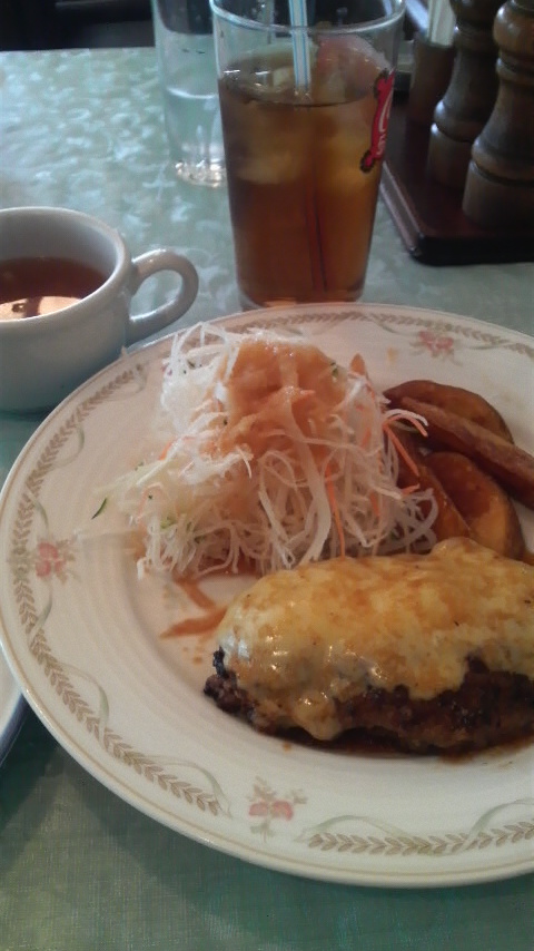 サラダに至ってはキャベツの固さに一口で自爆。(ざく切りだったのです)