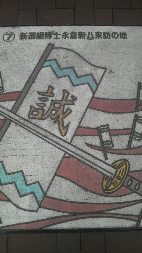 碑の前の歩道の敷石には、こんな絵も描かれています。