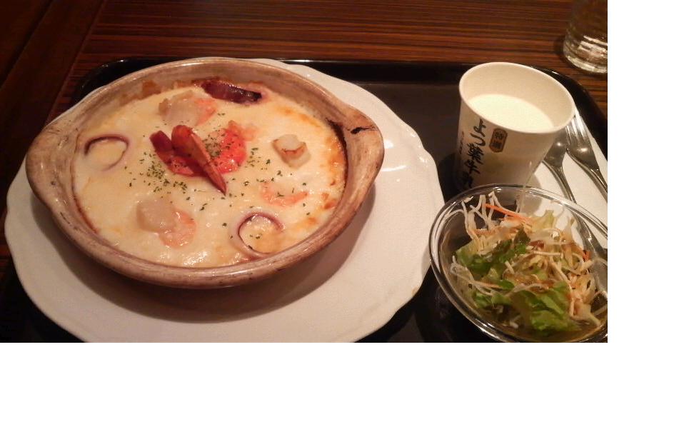 東京から帰って来た後、外食で真っ先に食べた“よつ葉 ホワイトコージー”の“海の幸ドリア”。