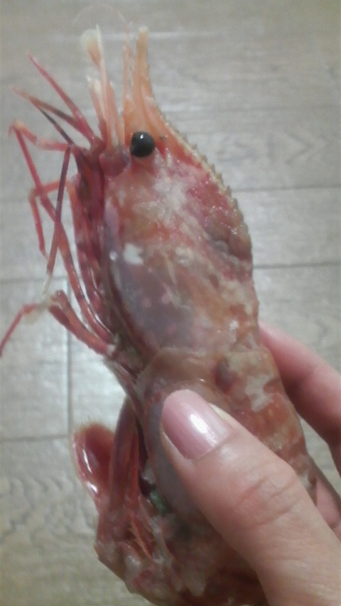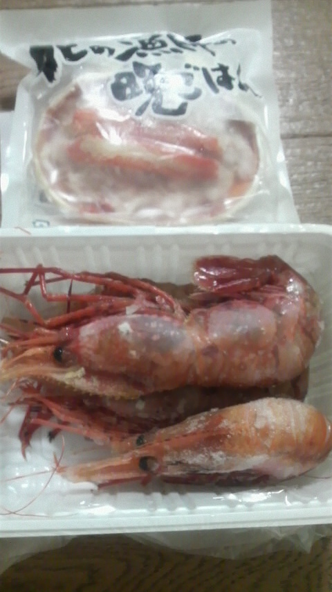 開けてみたら、おっきい北海車エビ5尾と本ズワイ蟹の甲羅盛り!!(◎Д◎;)