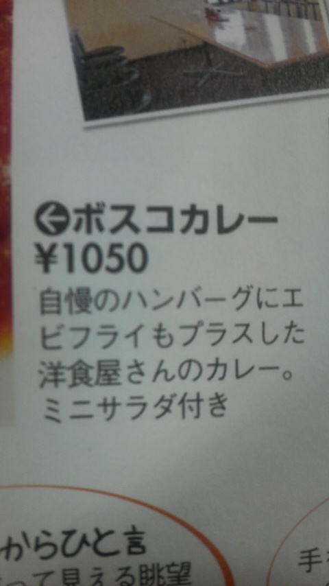 肉料理メインで、カレー・ハンバーグ・エビフライのボスコカレーが定番メニューだそうです。