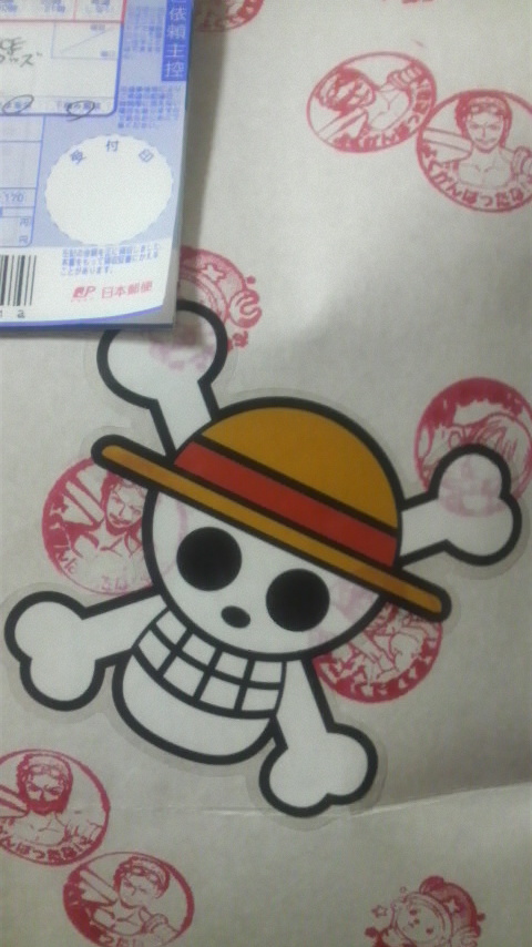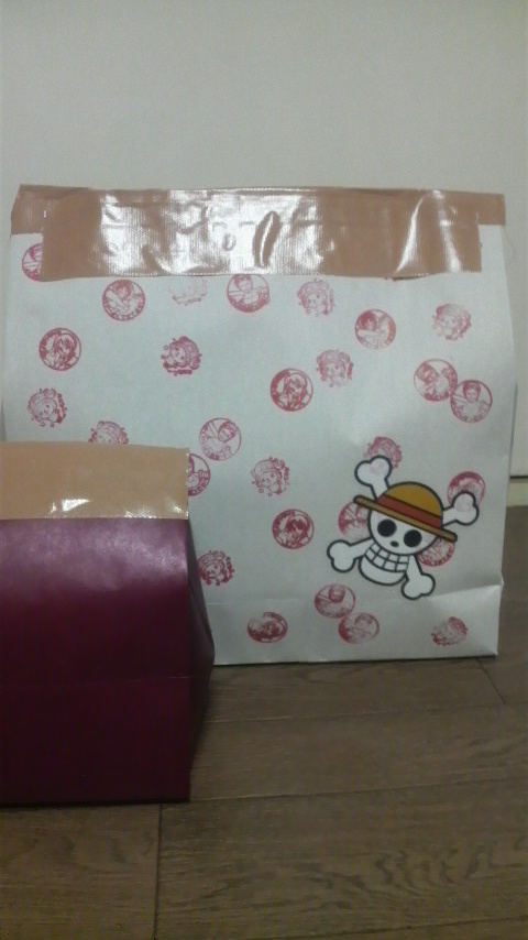 秀発送用のオリジナル紙袋、“ONE PIECE”のステッカーも貼ったんだけど、まさか切り取ってとっておかないだろうな?(汗)