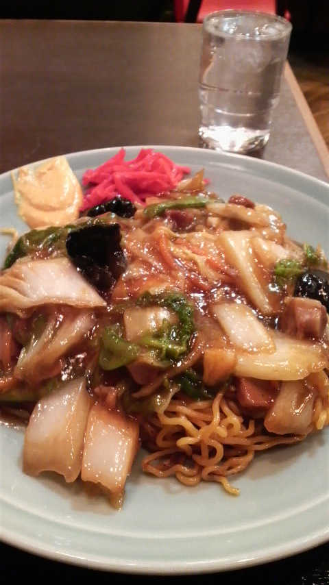 広東麺だと食べているうちに、あんが汁に溶け込むので油っぽさは感じないのが、焼きそばだと逃げ場(?)なし。(汁は飲みません)