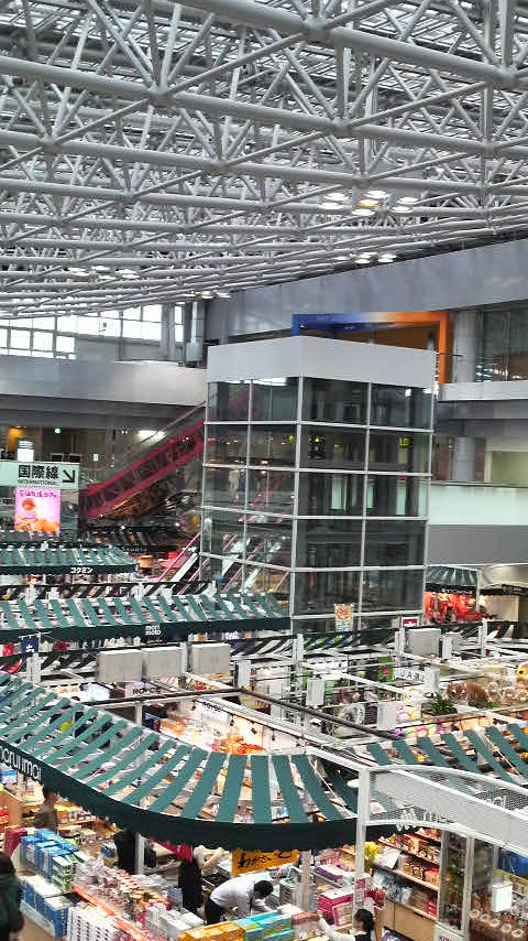 写真二枚は新千歳空港内で、三枚目は新羽田空港の到着ロビーからの風景です。