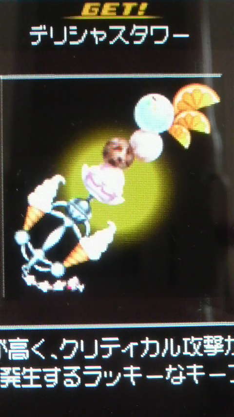 早速、“ディズニータウン”のルーイのお店へ行って、レアキーブレード“デリシャスタワー”を入手することが出来ました!