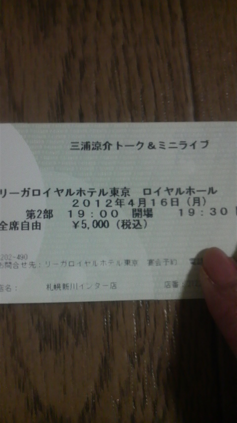 昨日、散々電話が繋がらなかった4月のりょん(三浦涼介くん)のトークショー&ミニライブのチケット予約が出来たよー!!(>_<)