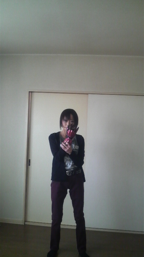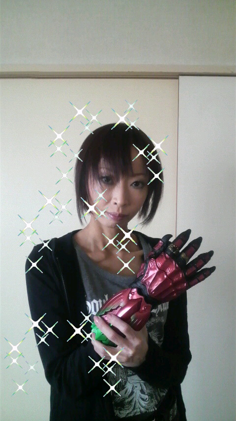プリクラを撮る時は、折角アンク腕を持参したのに着け忘れて、グローブ部分だけ装置したり、二枚目を撮った時もユニット(手首部分)が、ずり落ちるから必死で押さえたり…とか、色々とハプニングが続出。(-_-;)
