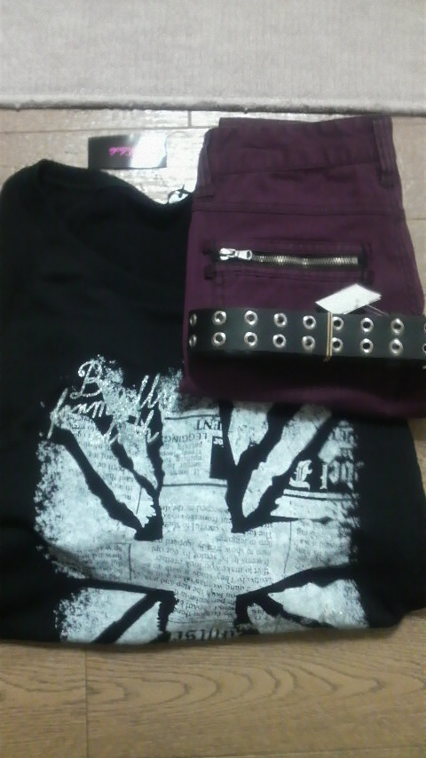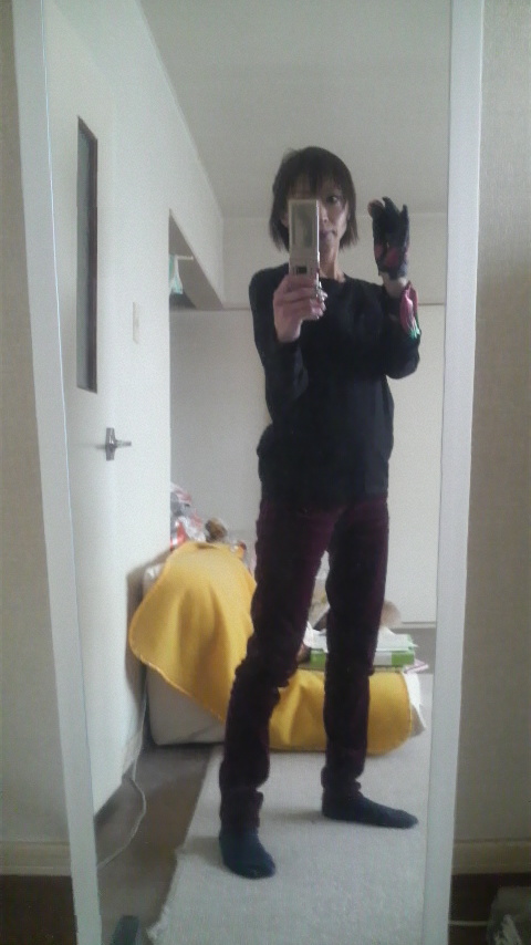 寒中見舞い用の写真のために、シ○ムラでワインレッドのスキニージーンズと穴あきベルト、柄パーカーを買って来たー!!