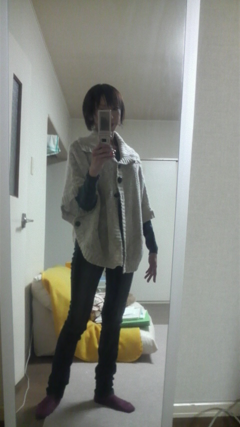 あと、今まで履いていたジーンズがすっかり合わなくなって、逆に細さが目立ち過ぎるので(爆)、ジーンズ二本と毛糸のポンチョも買ったよ。